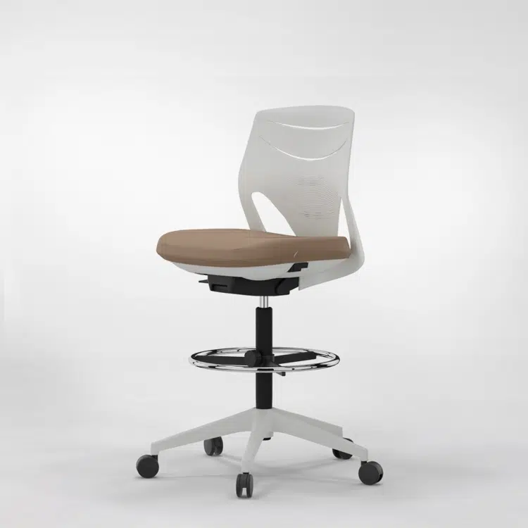 Actiu Efit se ofrece también en banqueta. Sillería operativa en formato elevado para reuniones informales pero de altura. Su asiento ACS proporciona un reparto de peso equivalente gracias a la espuma de poliuretano con cámaras de aire incorporadas.