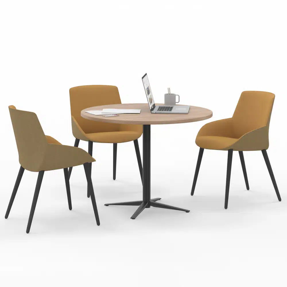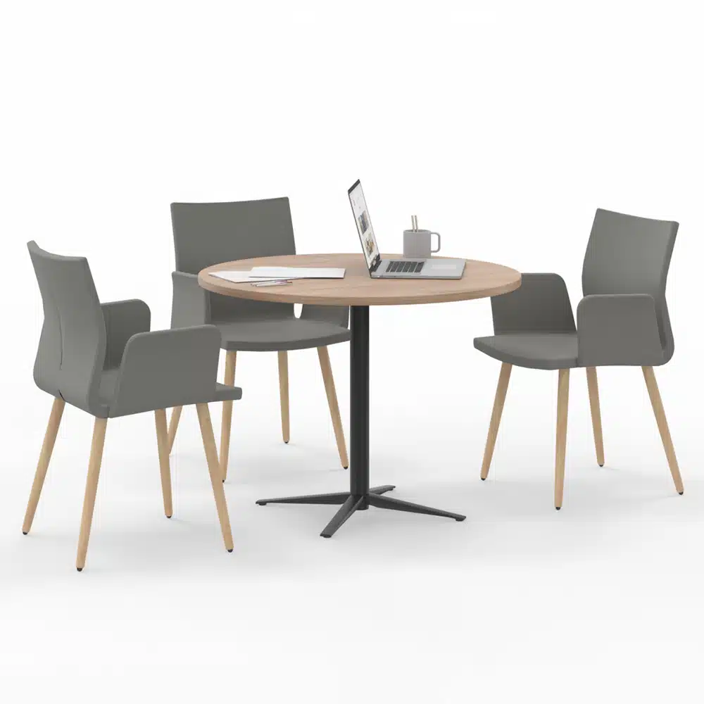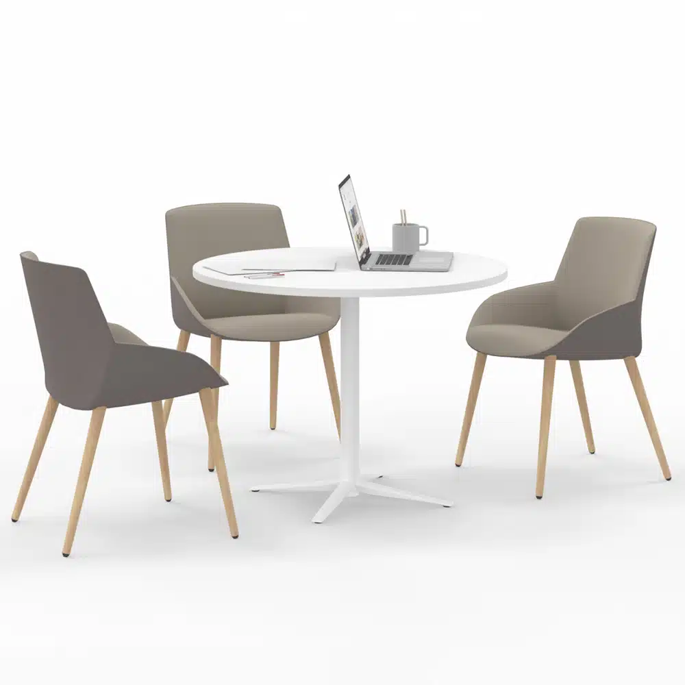 La mesa de reuniones redonda Actiu Tar 20 es perfecta para reuniones pequeñas de 3 a 4 personas. La mesa de oficina Actiu tiene elegantes detalles que quedan muy bien en una gran variedad de espacios de trabajo.