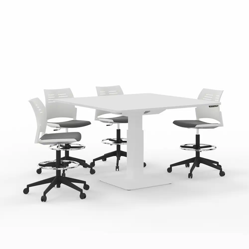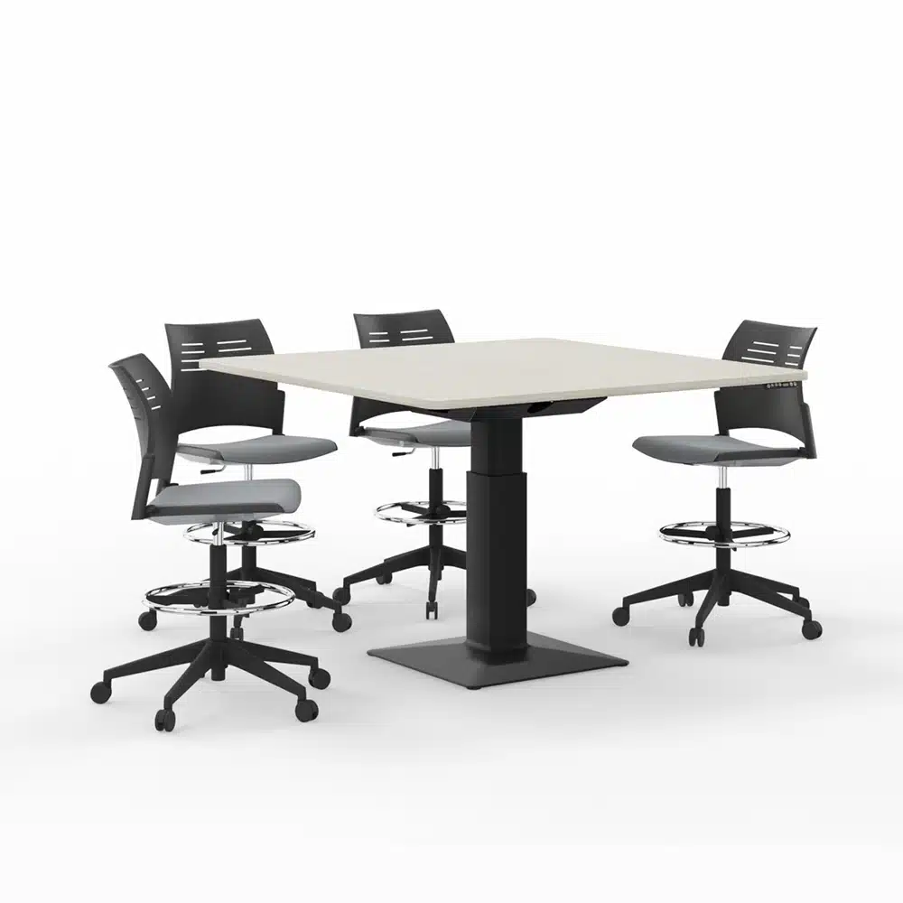 Mesa elevable de oficina para reuniones Actiu Power Serie 300. Mesa alta para zona de reuniones regulable en altura