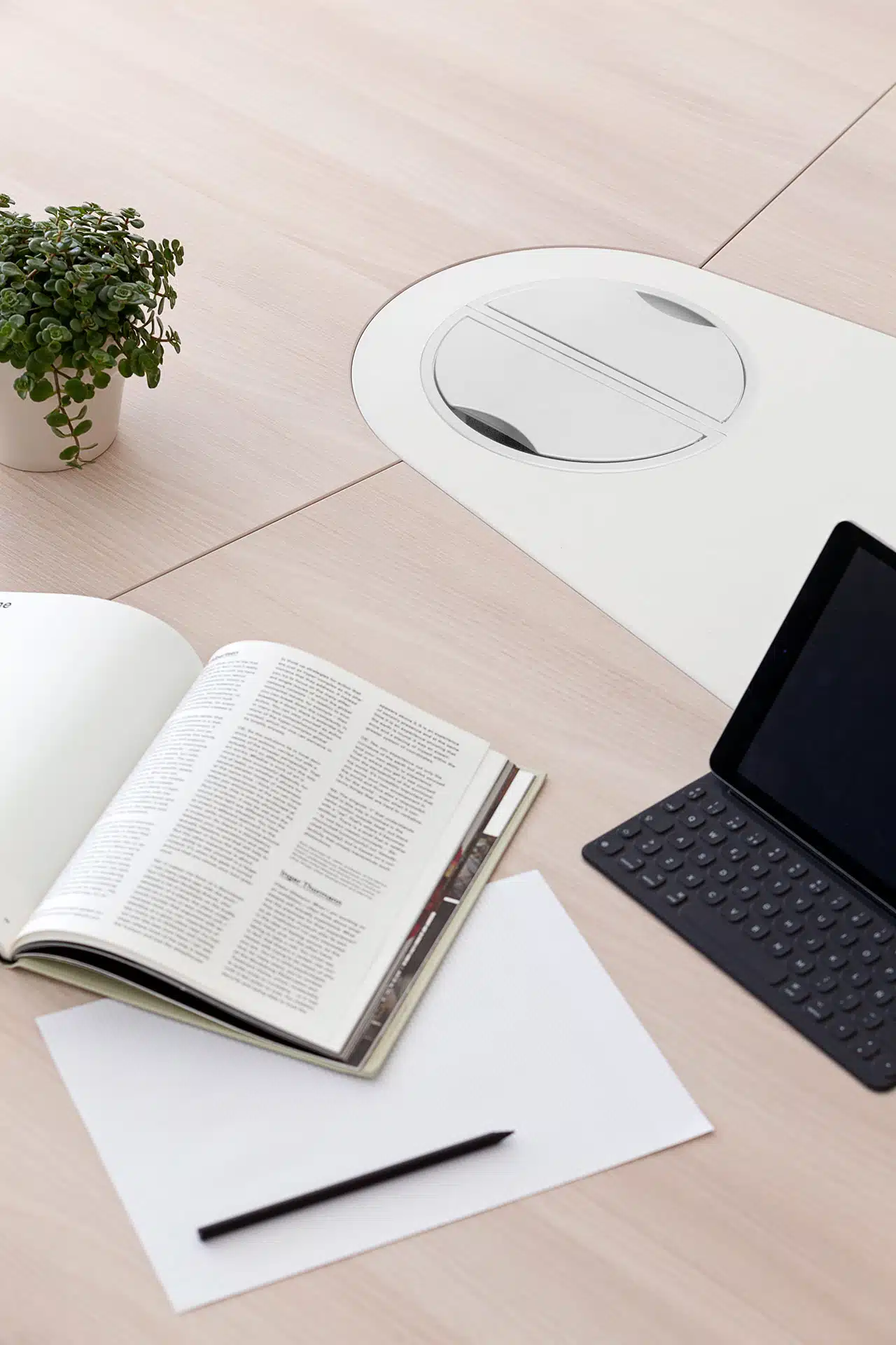 Actiu Power Serie 300 destaca en su gran formato, ya que presenta mesas de oficina para espacios directivos y de reunión con mesas fijas de grandes dimensiones. Las mesas altas de oficina para reunión regulables en altura cubren un amplio abanico de acabados. Su estructura retranqueada favorece la operatividad y dispone de una salida de electrificación hecha de inyección de aluminio, de apertura circular y tapa abatible que permite el acceso desde diferentes ángulos de la mesa.