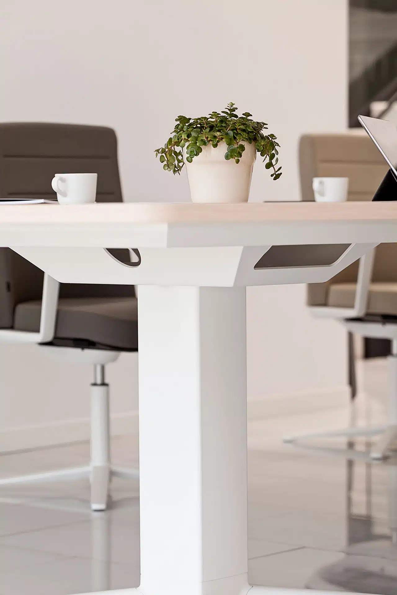 Actiu Power permite configurar mesas de reunión elevables para oficina que favorecen la comunicación y cuentan con accesos para la canalización del cableado, tanto en mesas como en armarios complementarios, favoreciendo el uso de mesas de oficina altas para reuniones elevables en altura. El sistema Power resuelve de forma eficiente las necesidades de uso para dar respuesta a los requerimientos que las oficinas actuales precisan: soporte para videoconferencias o mesas directivas y de reuniones.