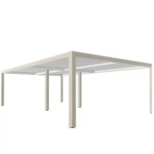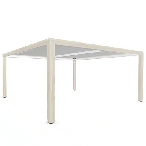 Con un cuidado diseño, Prisma esconde una gran complejidad en su estructura. El entronque de sus patas, realizado de forma piramidal y con un aspecto compacto ha supuesto un reto en la fabricación de esta mesa. Cuentan también en sus patas con niveladores de PP inyectado con soleta antideslizante de una altura total de unos 74cm. Están fabricadas con perfil de acero laminado en caliente y decapado de 1,5mm de espesor.