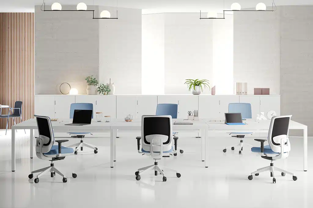 - Canal de electrificación suspendida para mesas dobles con regulación de altura.