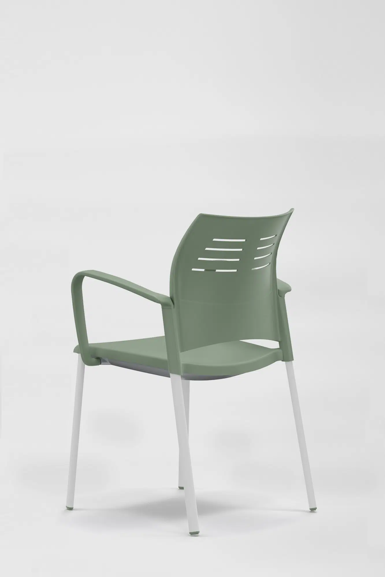 El respaldo de la silla tiene líneas suaves y diseño a base de ranuras de transpiración le aporta flexibilidad y ergonomía sin restarle robustez, lo que la convierte en una silla multifunción ligera y polivalente. Además, cuenta con elementos opcionales como brazos, pala de escritura abatible y rejilla inferior porta-documentos para mayor comodidad.