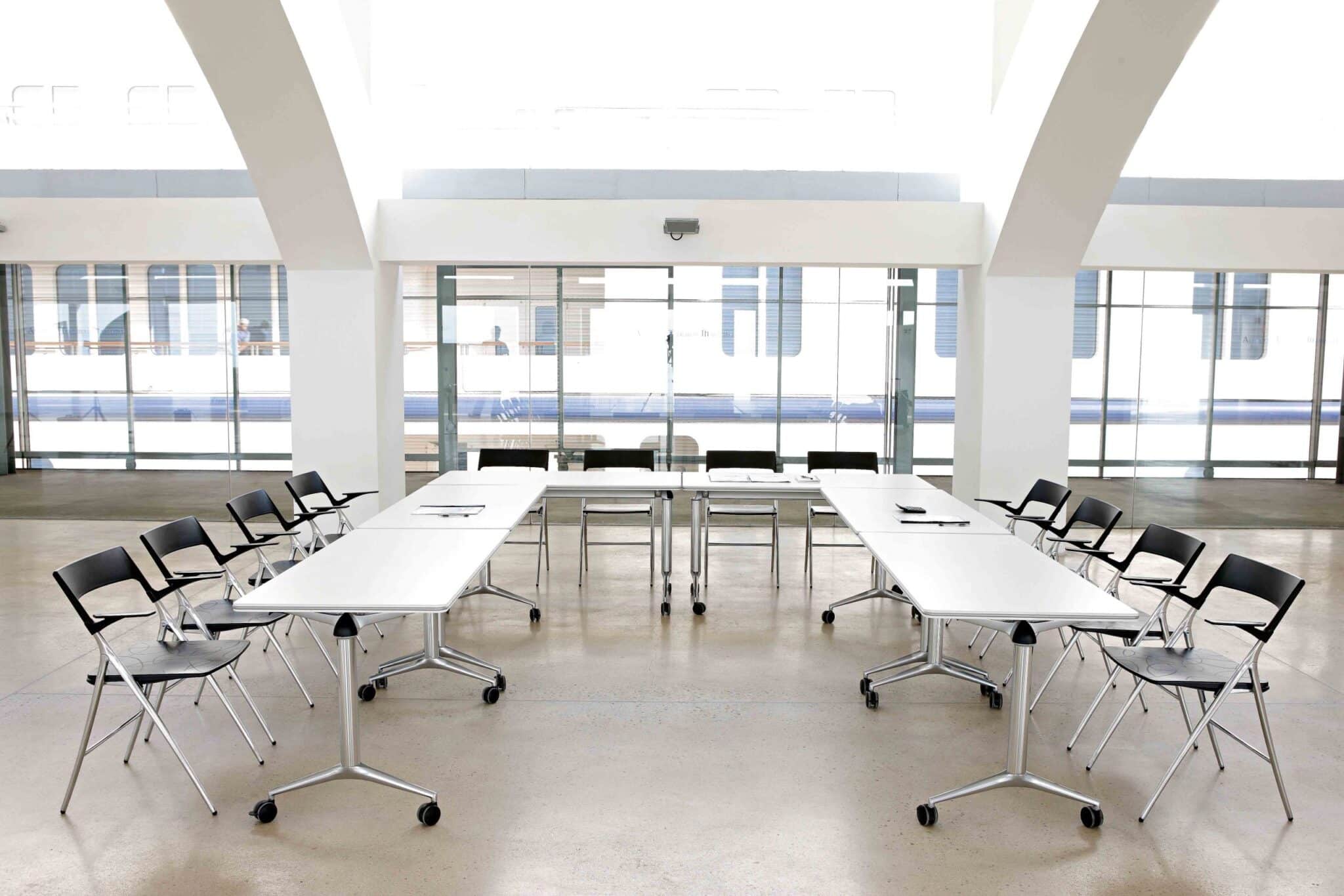 Con varias formas y tamaños disponibles, la mesa plegable de formación Acitu Trama 80 puede utilizarse como una mesa de trabajo independiente. Las mesas plegables de formación se pueden unir rápidamente para adecuarse a cualquier configuración.