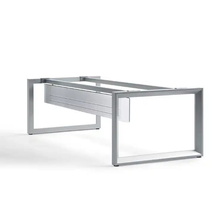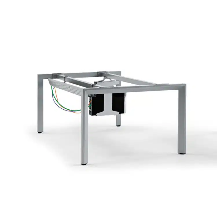 Con la posibilidad de elegir entre dos tipos de estructura: estructura de patas y estructura de marco cerrado. La mesa vital plus dispone de un larguero central retranqueado que permite la fijación de complementos auxiliares de forma indiferente, con niveladores y regulación de altura.
