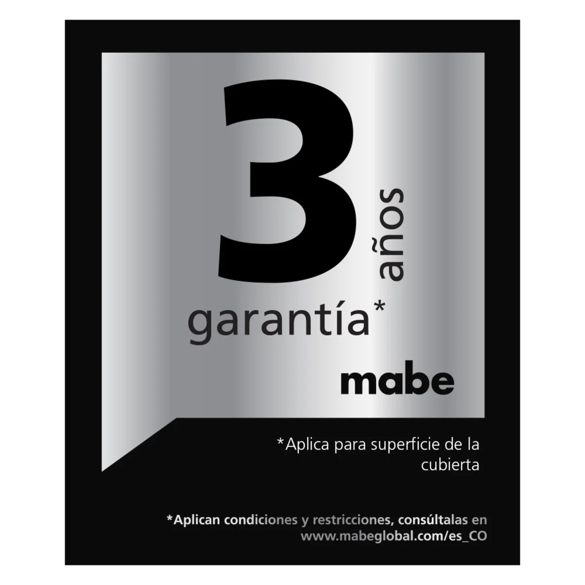 Respaldo y seguridad mabe 3 años de garantía superficie de cubierta Inox.