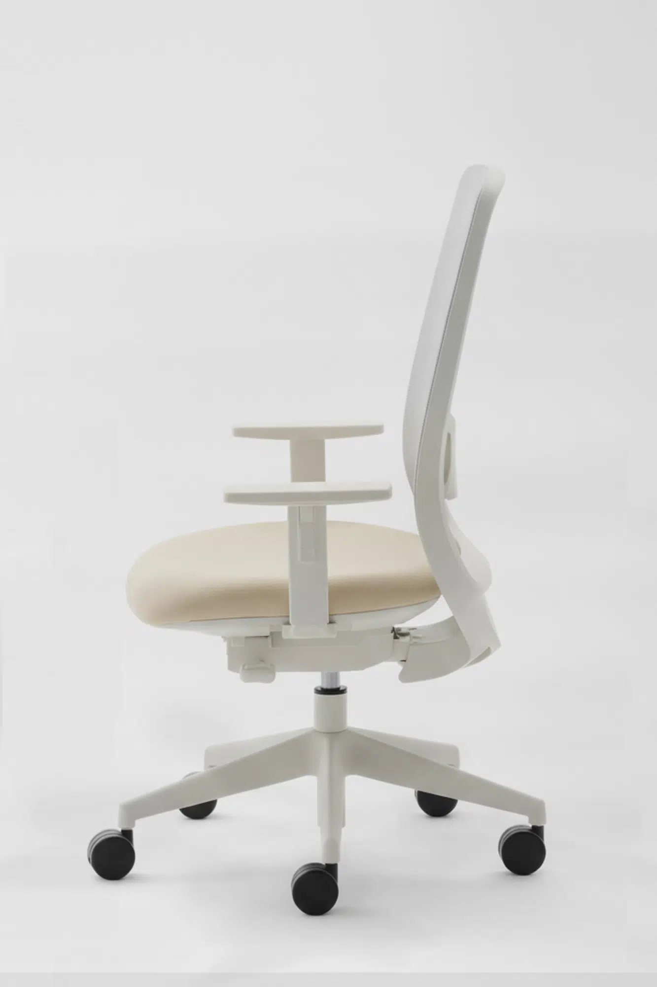 Silla de oficina operativa Delaoliva Serie Peper. Silla de oficina blanca de disen?o ergono?mico de formas redondeadas a juego con respaldo, con curvatura delantera que reduce la presio?n en las piernas y favorece la circulacio?n sangui?nea. Interior y carcasa exterior del asiento en polipropileno color negro. Ajuste de altura del asiento mediante gas y regulable en su inclinacio?n horizontal entre 1o y 10o.