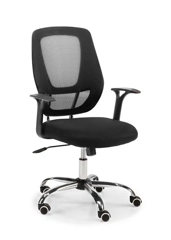 Colores: Asiento, respaldo y carcasas color negro. Base y estructura cromado.