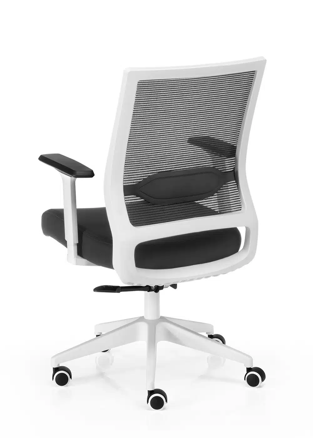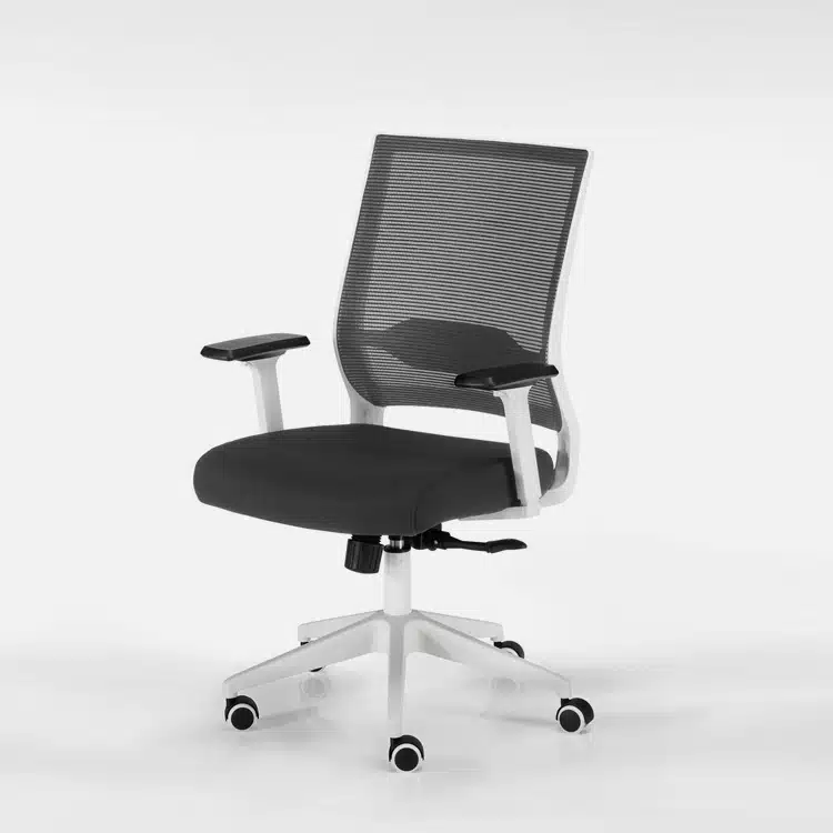 - Colores: Tapizado y malla color negro. Marcos, brazos y base blanca.