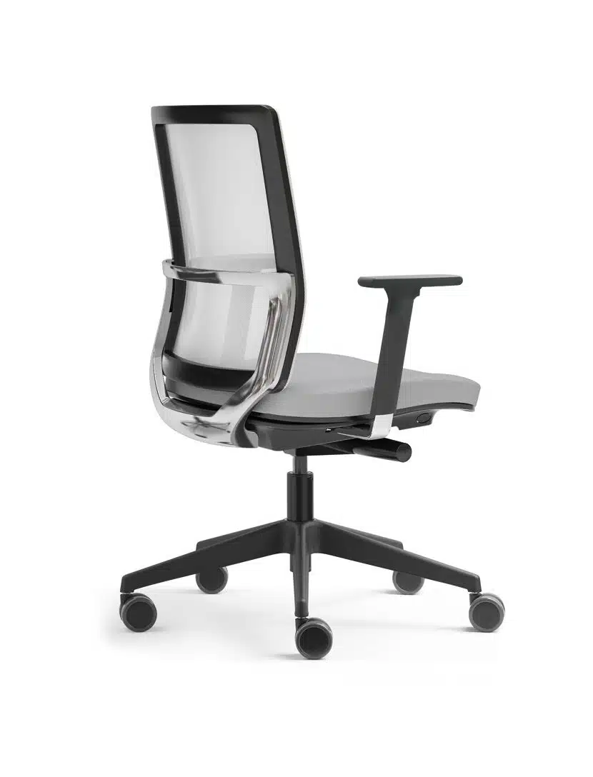 El programa 2K8 ofrece sillas giratorias con respaldo alto o bajo que pueden ir con malla reforzada con hilo de poliamida, malla Runner 3D o con espuma tapizada. Además, el soporte trasero que define la línea estética del programa es de aluminio pulido.
