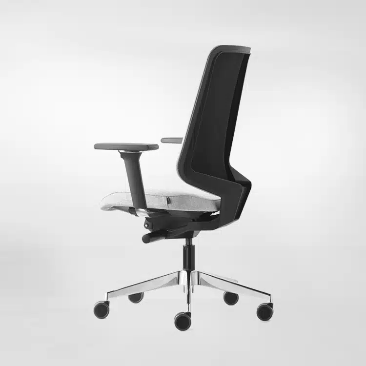 En definitiva, un acierto de Forma 5 al fabricar una silla ergonómica que encaja a la perfección en espacios de trabajo abiertos y perfecta para empresas con equipos de trabajo. Si tenemos una oficina con estas características, es recomendable seleccionar la base de aluminio blanco, de esta forma el marco del respaldo, automáticamente será blanco y la sensación de luminosidad y amplitud se verá incrementada.