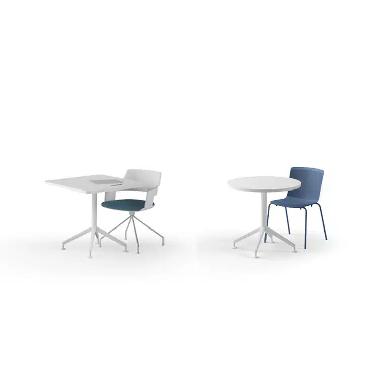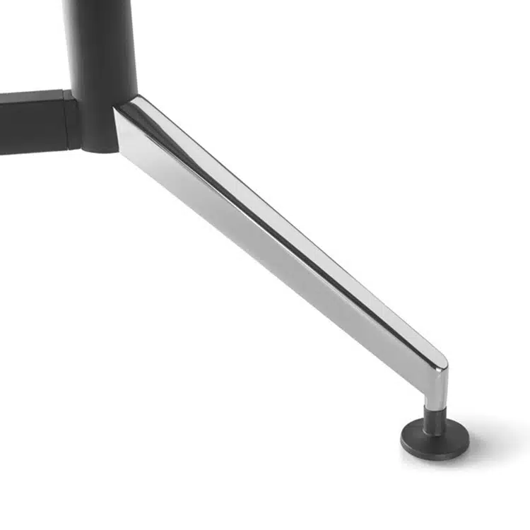 Las mesas operativas de despacho Forma 5 Drone tienen una estructura formada por chapón, columna, pies de apoyo y travesaños inferiores. Solo hay una altura de mesa y el vuelo desde la cara exterior del travesaño inferior al borde de la tapa medido en proyección varía según la geometría de la tapa.