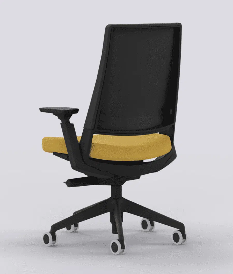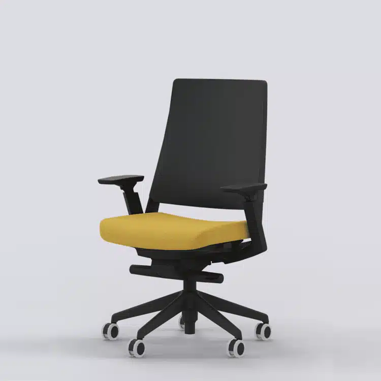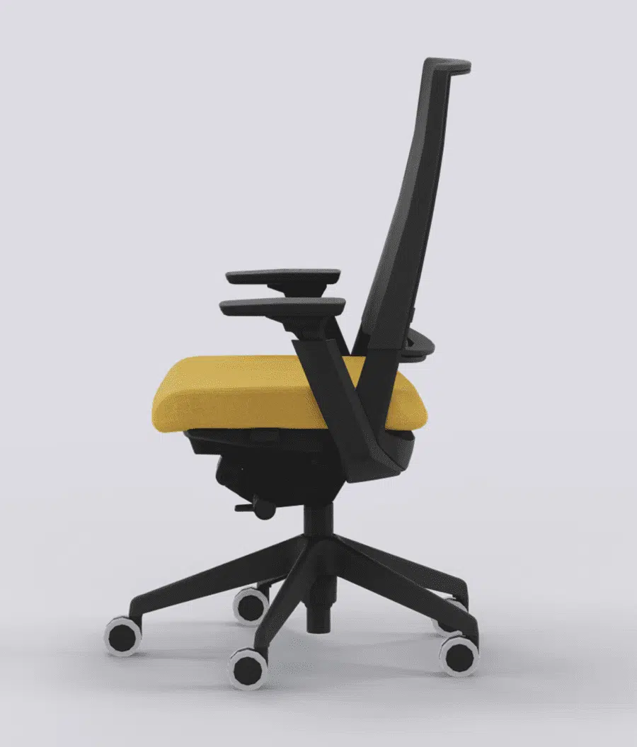 La silla Kineo Forma 5 color amarillo mostaza con entrega en 24 horas se basa en el concepto de la también revolucionaria silla de oficina 3.60, para la que hemos desarrollado un mecanismo con un efecto de rótula esférica que permite que la silla de escritorio oscile libremente, acompañando al movimiento natural del cuerpo y exigiendo al usuario una continua estabilización, incrementando el movimiento articular y la actividad muscular.