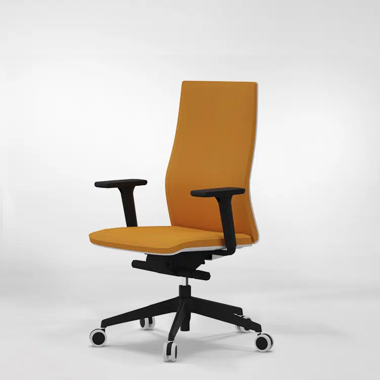 Silla para oficinas giratoria multifuncional regulable en altura, compuesta por asiento y respaldo disponible en dos alturas. Ambos elementos van tapizados y disponen de forma ergonómica. Además, puede adquirirse con brazos regulables o fijos. Opcionalmente en el respaldo alto puede llevar apoyo cervical de descanso, con forma anatómica.
