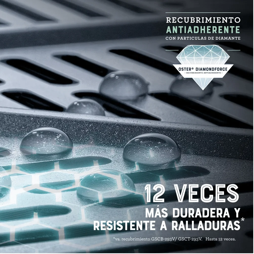 - Recubrimiento Oster® DiamondForce: Hasta 15 veces más fácil de limpiar*.Hasta 12 veces más resistente a rayaduras*: No se agrieta, pela o raya