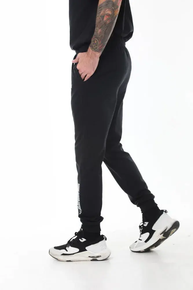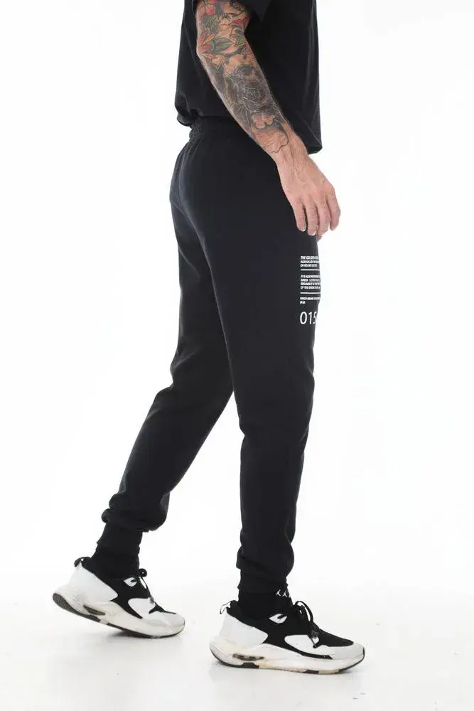 Con un diseño moderno, este jogger presenta una cintura elástica ajustable con cordón para un ajuste personalizado. Su tejido suave ofrece comodidad para el día a día, mientras incorpora bolsillos laterales y un corte ajustado que se estrecha hacia los tobillos, finalizando con puños elásticos. A su vez, detalles de texto gráfico adornan las piernas.