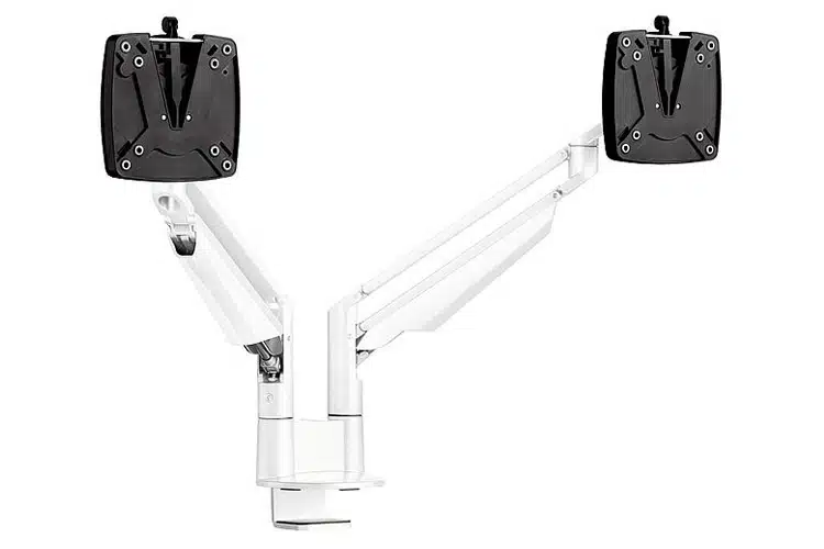 - Solución para pantalla doble con sistema de gas a presión para el ajuste cómodo y ergonómico de los monitores