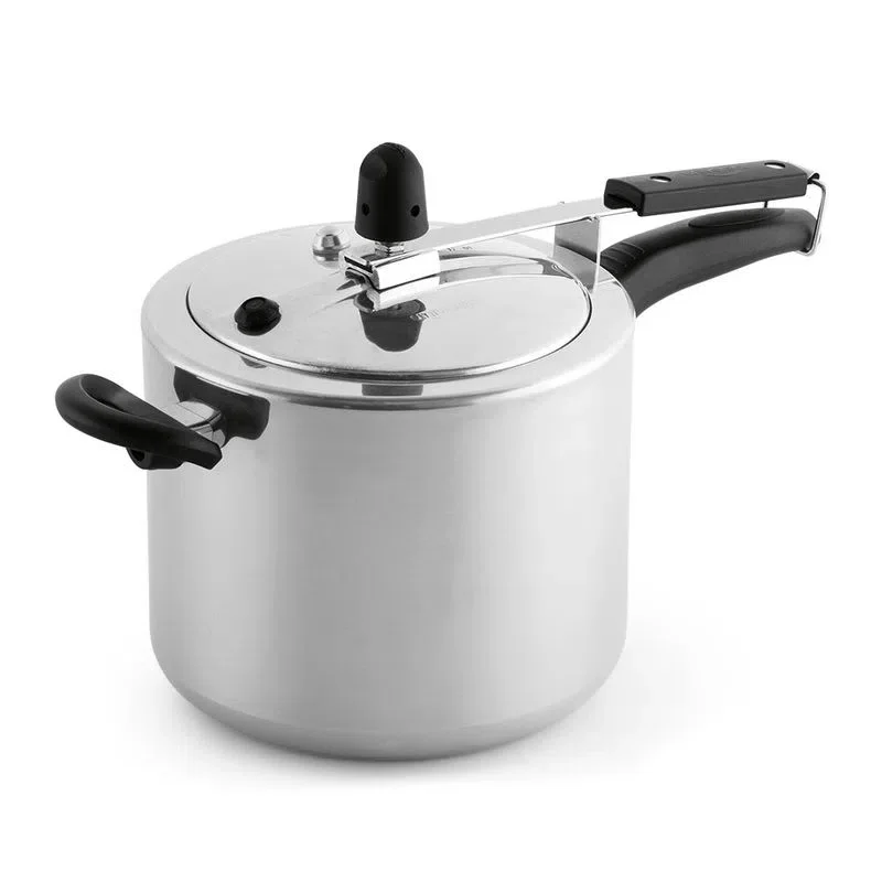 Calidad y seguridad en tu cocina, con 3 sistemas de seguridad y además cuenta con un dispositivo para liberar la Presión de manera fácil y segura. • Cuerpo en aluminio de 1.8 mm y tapa en aluminio de 2 mm. • 3 Sistemas de seguridad: * Pesa de regulación que hace que la presión que se mantenga constante a 80 kPa. * Válvula de seguridad metálica que se activa a 130 kPa y retorna automáticamente a su posición de sellado cuando la presión ha sido evacuada. * Válvula de seguridad en caucho, se activa a 180 kPa y se debe sellar manualmente cuando se haya evacuado toda la presión interna de la olla. • SISTEMA AUTOAJUSTABLE Permite abrir y cerrar la olla con mayor facilidad, garantizando un cierre totalmente hermético. • Garantía de 25 años. Materiales • Aluminio: 87% • Baquelita: 4% • Caucho: 1% • Acero: 5% • Silicona: 1% • Otros: 2% Recomendaciones • Solo para uso doméstico. • No llene la olla más de 2/3 de su capacidad. • Cuando son productos que crecen durante la cocción, no llena la olla más de 1/2 de su capacidad. • Nunca cocine alimentos que generen espuma. • No toque las superficies calientes, use los mangos y asas. • Vigile cuidadosamente cuando la olla se use en presencia de niños. • No usar la olla a presión dentro del horno. • Siempre revise el tubo de escape y asegúrese de que no esté obstruido. • No use la olla para freír.
