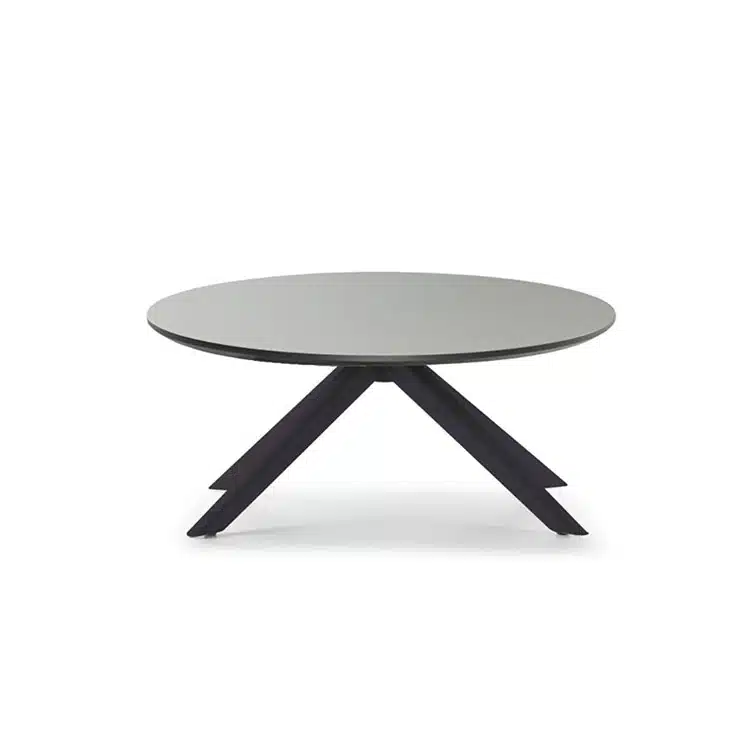 Características mesa auxiliar redonda para sala de espera y recepción Bow Lonuge de Pattio base piramidal