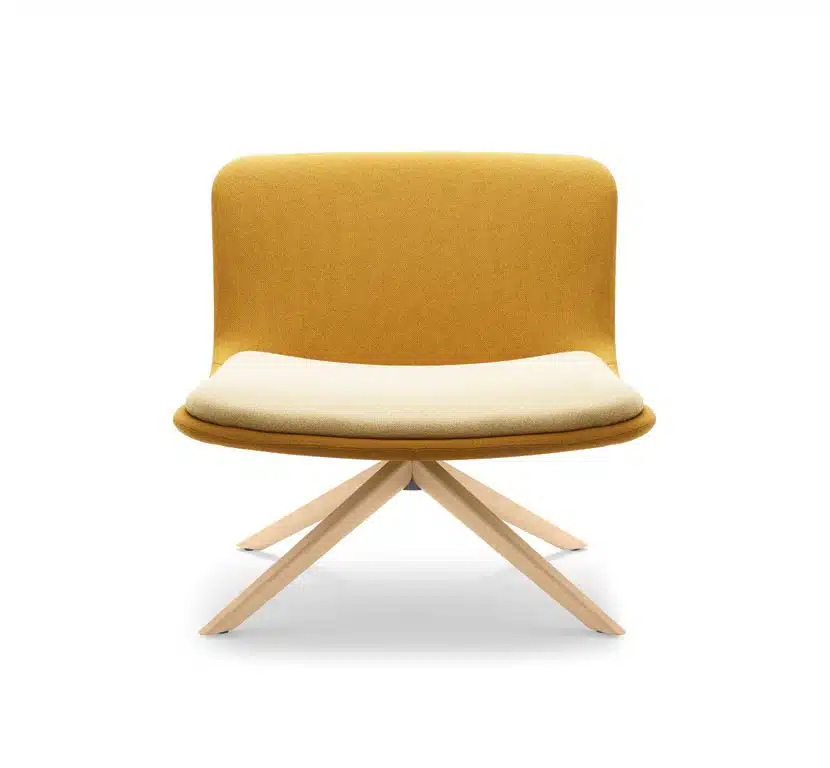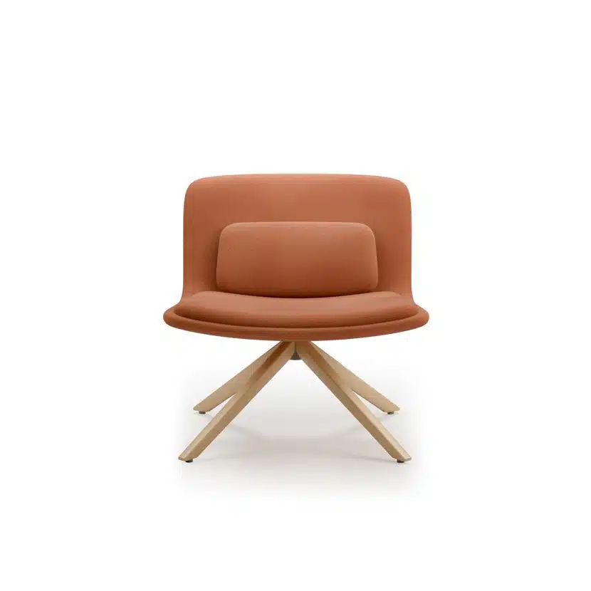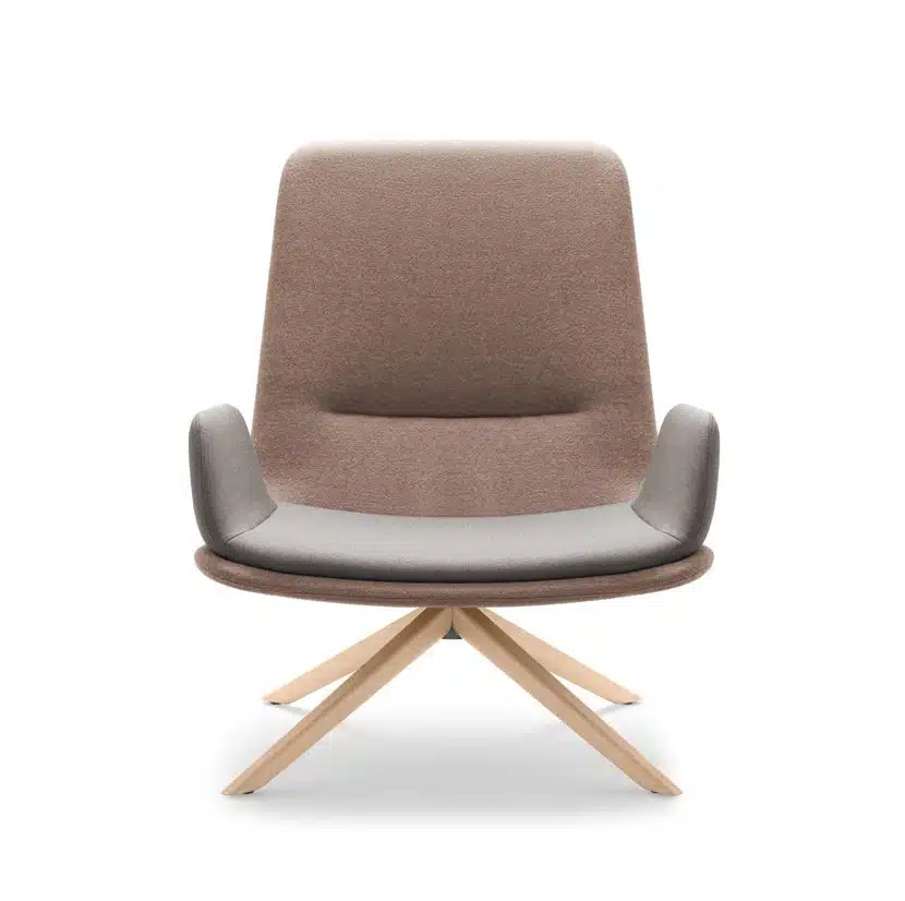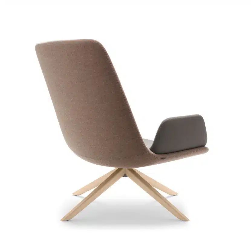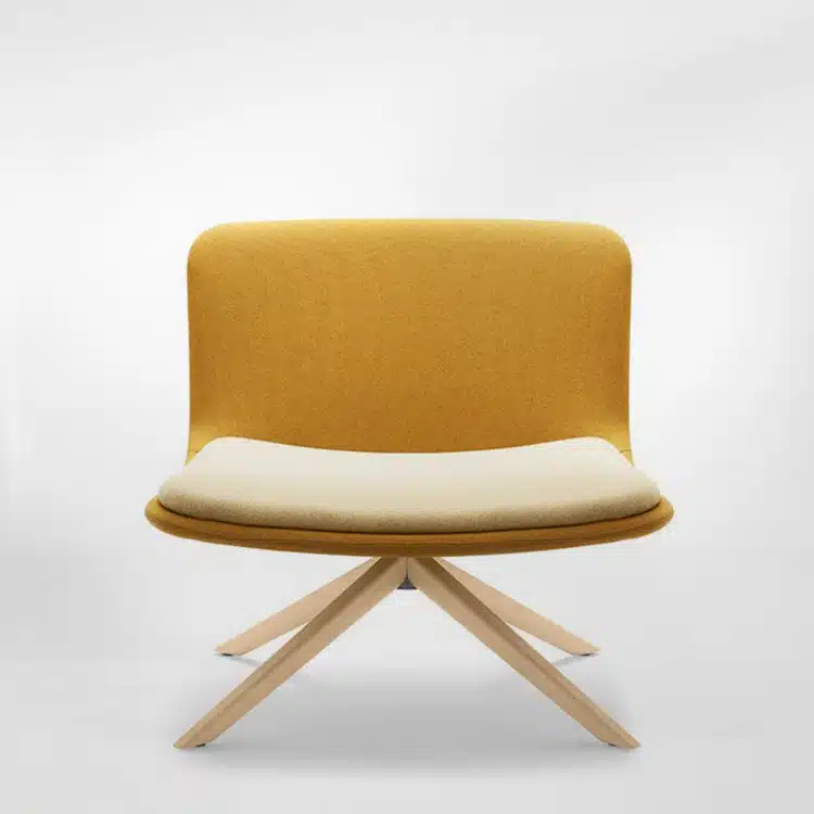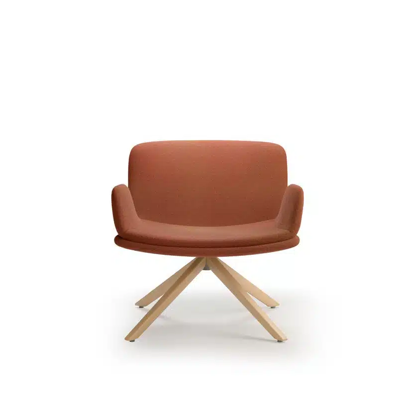 Sillón giratorio base piramidal madera Glove Lounge Pattio. La comodidad y el bienestar directamente ligados a la productividad de la empresa. Sillones confidente base piramidal madera Glove Lounge Pattio de ambiente cálidos como los que Soft seating Glove Lounge fomenta la comunicación y las relaciones fluidas entre el equipo. Soft seating perfecto para salas relax de trabajos creativos y de concentración.