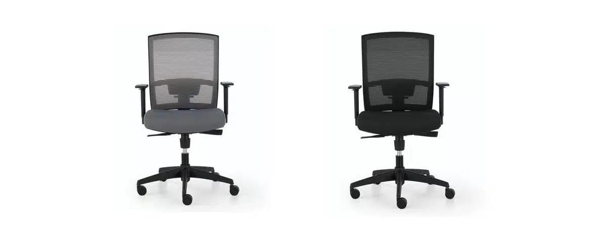 Tapizados: respaldo en malla y asiento tapizado. Malla de respaldo color negro / Asiento tapizado de serie (suplemento por tapizar el asiento en otros colores).