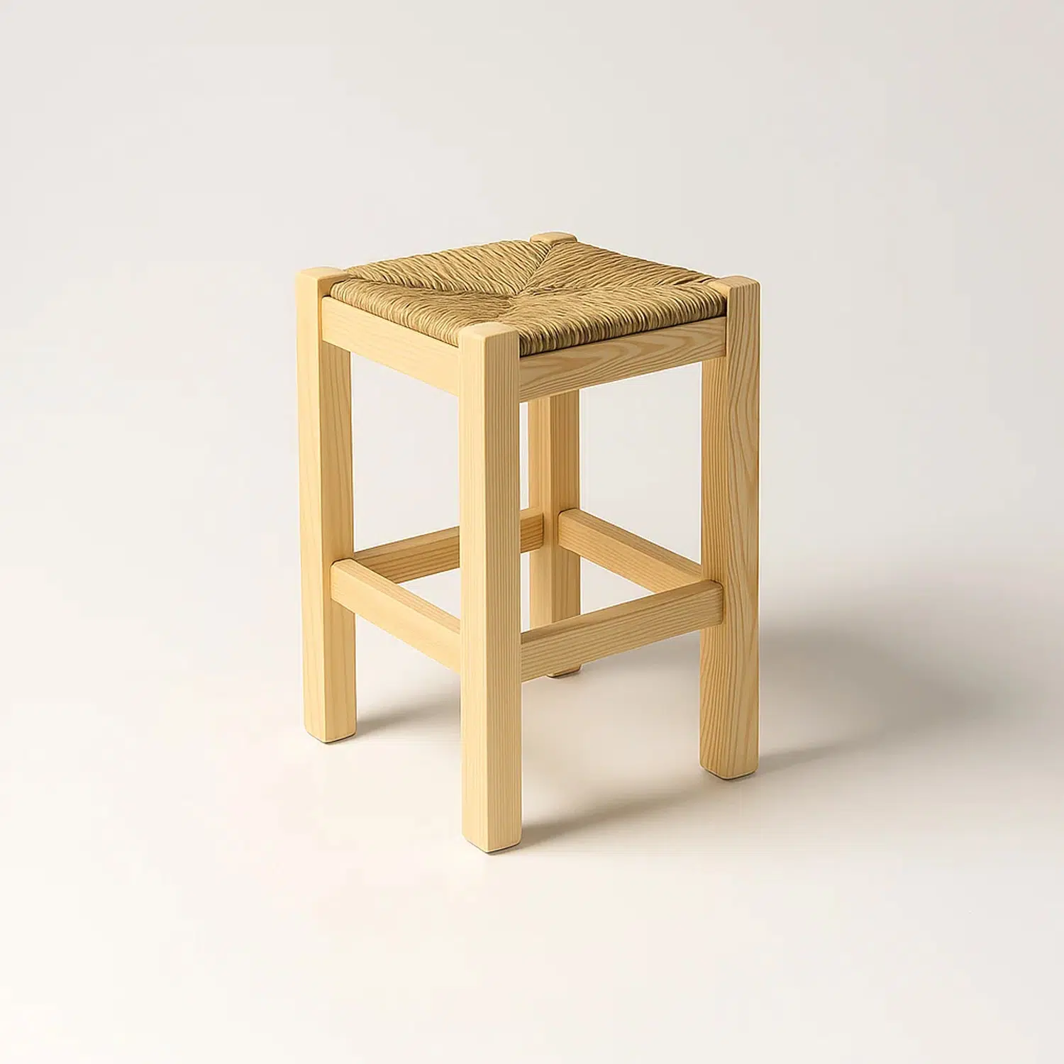 - Modelo: Taburete bajo de madera y asiento de paja.