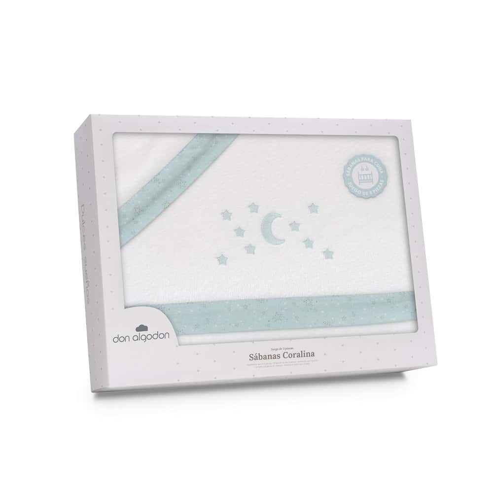 . Triptico sabanas CUNA invierno calentito Coralina Don ALGODON Luna Estrellas BCOVERDE D30001-13